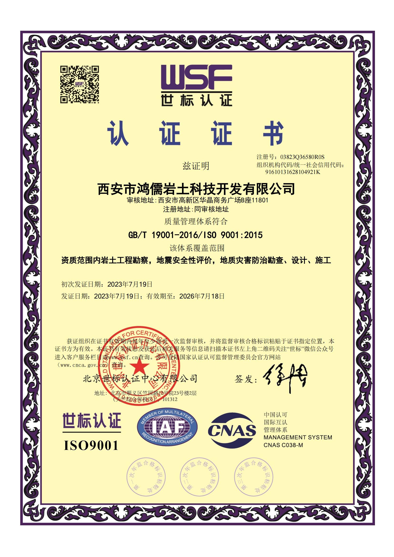 鴻儒勘測(cè)設(shè)計(jì)有限公司成立于1997年,注冊(cè)資金1212萬元。具有工程勘察專業(yè)類甲級(jí)資質(zhì)、環(huán)保工程專業(yè)承包三級(jí)資質(zhì),地質(zhì)災(zāi)害治理工程勘查、設(shè)計(jì)及施工甲級(jí)資質(zhì),地質(zhì)災(zāi)害評(píng)估丙級(jí)資質(zhì),通過了GB/T 19001-2016/ISO 9001:2015質(zhì)量管理體系認(rèn)證。